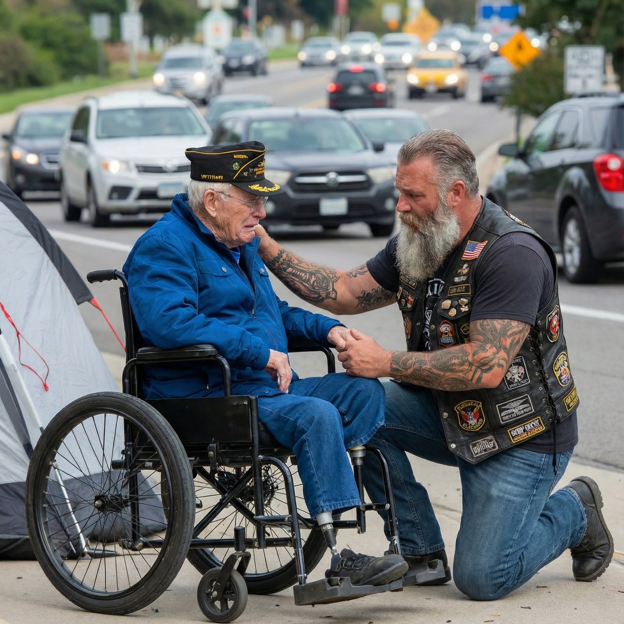 I almost rode on. Told myself the usual lie: someone else will stop. Someone with more time, more money, more strength to deal with what I assumed was another sad roadside story. But then I saw the hat. Vietnam Veteran.