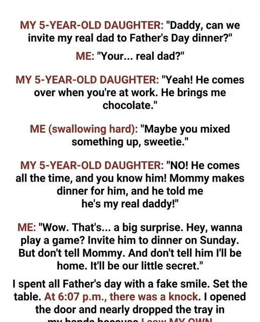 She nodded and calmly explained that her “real dad” sometimes came to the house when I was at work. She said he was nice… and sometimes he brought her chocolate.