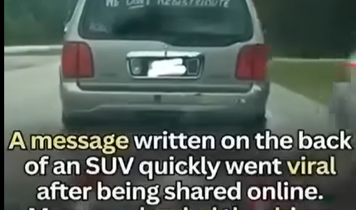 After being uploaded online, a phrase scrawled on the rear of an SUV swiftly gained popularity.