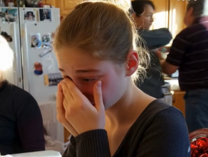 Ella’s face fell. Her eyes filled. She shrank in her chair, shoulders trembling.