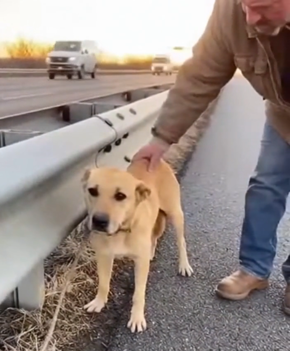 The dog had been standing on the shoulder of the highway for hours.