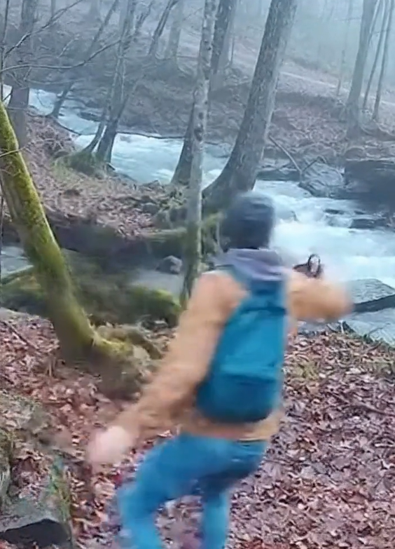 When viewers watched the clip for the first time, most people focused on the dramatic rescueโthe young man climbing down the slippery rocks, pulling the stranger out of the icy water just in time. But when the footage was slowed down, something completely different appeared in the corner of the frame.