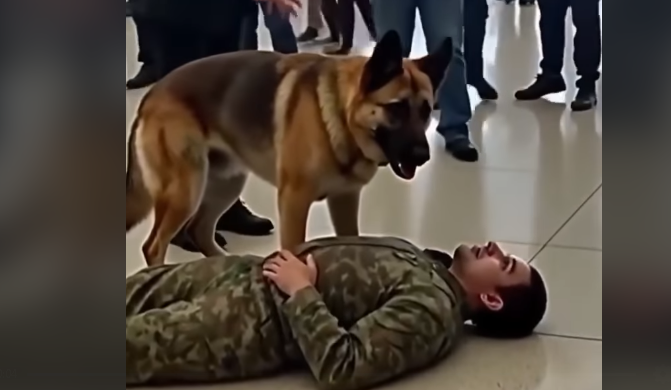 The dog recognized something simple and deeply human: its soldier was exhausted. Vulnerable. Temporarily unable to protect himself.