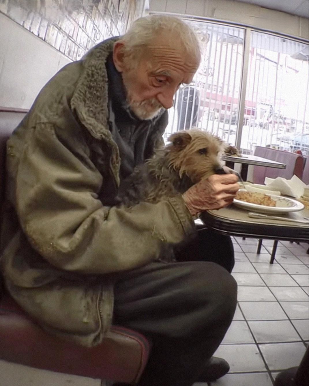 Standing in the doorway was an old man who looked as though he had been weathered by a lifetime of hard winters. He had a wooden cane in one hand and a thin coat that hung loosely off his narrow frame. One pant leg was pinned up where a leg should have been, and tucked beside him was a tiny, mismatched dog with oversized ears named Pickles. The man looked at the menu with a practiced, anxious gaze. “Evening, ma’am,” he said softly. “What’s the cheapest thing on the menu?”