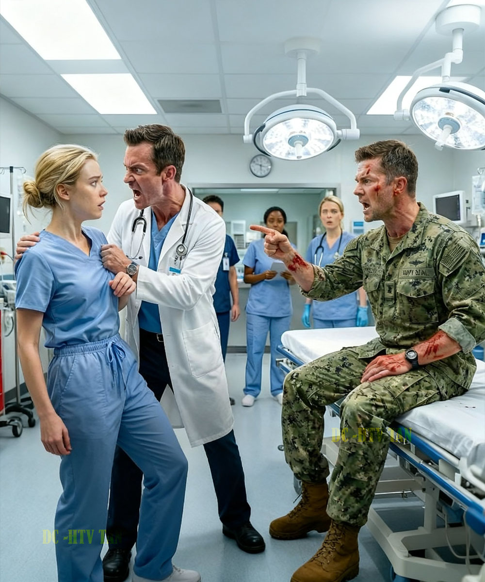 Emma finally looked at him. For the first time, the room saw the cold, quiet certainty in her eyes—the look of someone who had seen death in the mud and didn’t fear it in a sterile ER. “I’m not guessing. I’m reading him.” She tore open the field dressing, revealing a jagged puncture that was causing massive internal pressure. “He needs surgery, but not with you throwing hands.”