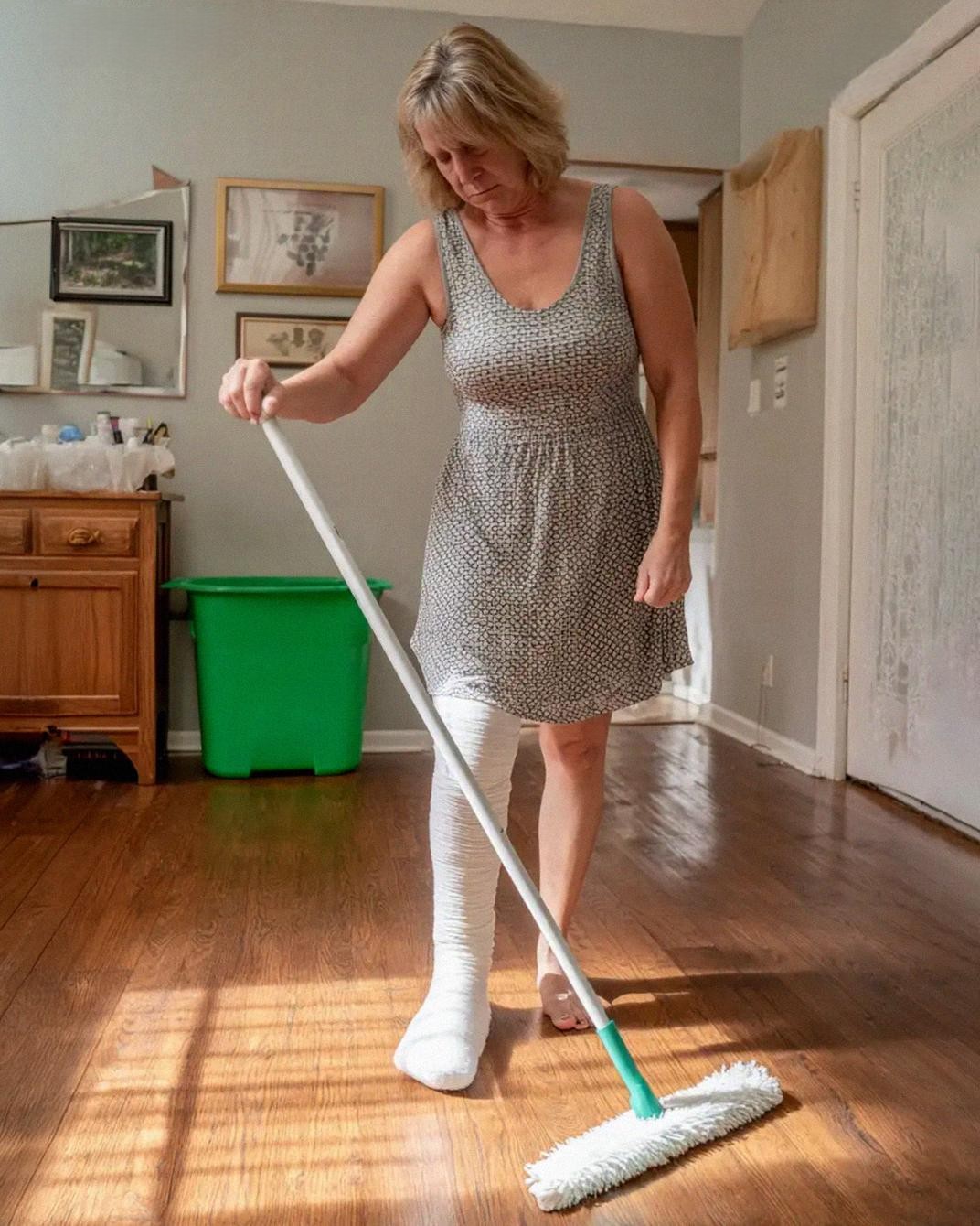 She tried to smile, but it barely formed. “Oh… honey. I slipped a few days ago. I broke my leg.”