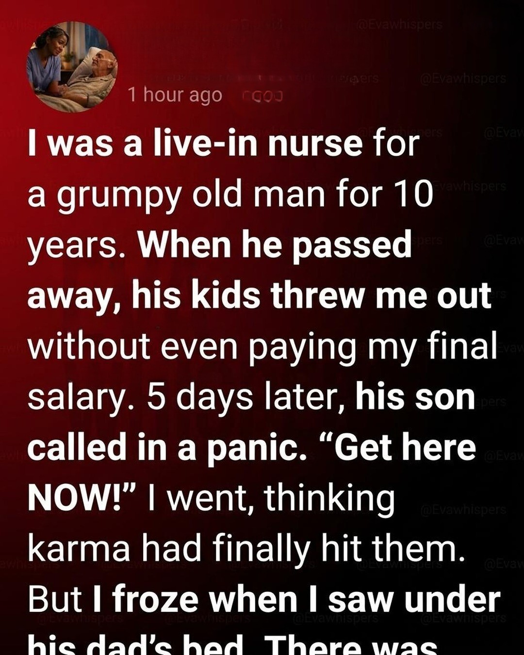 A week later, I received a call. It was the oldest son, and his voice was unusually unsteady. He insisted I come back right away because they had discovered an item in his father’s room that could only be unsealed while I was there. When I got there, the mood in the house was strained. Tucked away in a secret space under the floorboards beneath Mr. Whitaker’s bed was a small, locked metal chest.