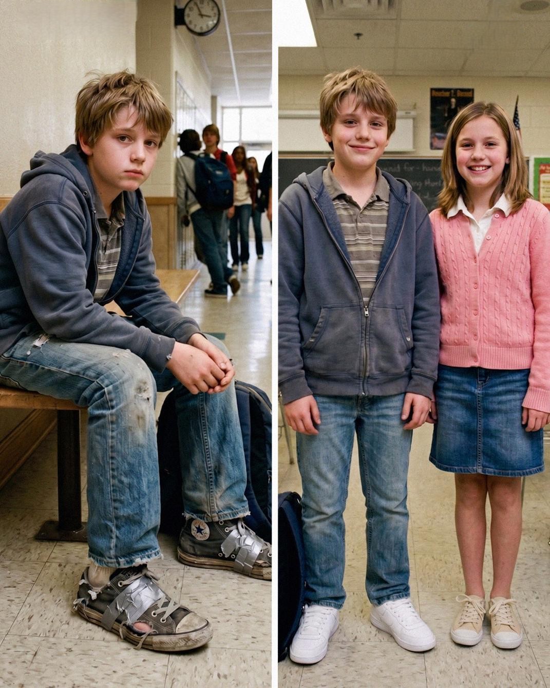 Only a day before, I had found the broken pieces of her ceramic bank on her bedroom floor. When I asked her about it, she looked at me with a blend of stubbornness and guilt, confessing she had spent every penny she’d saved—birthday gifts, chore money, and even her lunch cash. She had noticed a new classmate, Caleb, whose shoes were held together with nothing but duct tape. Emma hadn’t asked me for help, knowing our own finances were tight. Instead, she quietly took on the responsibility of preserving his dignity by buying him brand-new sneakers in secret. I was filled with pride, recognizing in her the same selfless nature her father, Joe, had before his life collapsed under a massive public scandal.