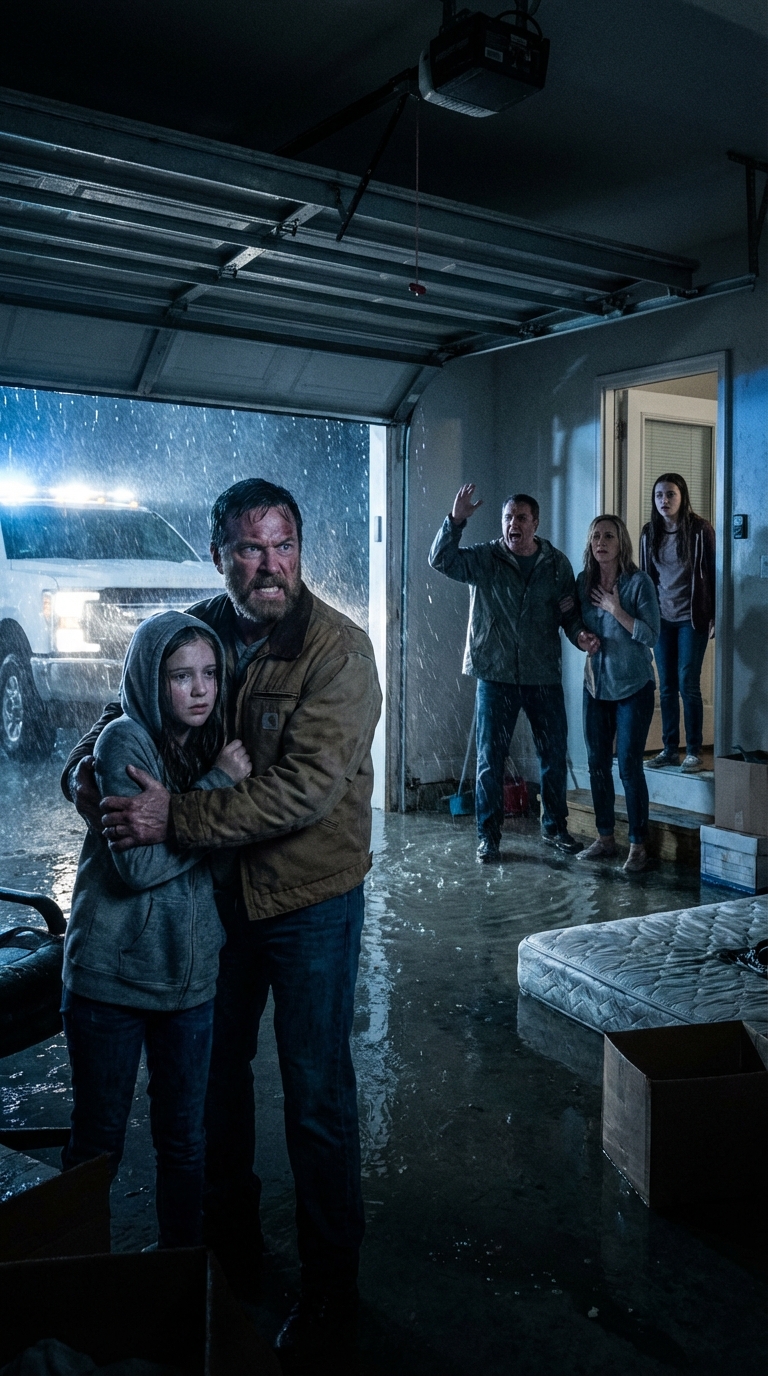 Thirty minutes later, the roar of a truck engine cut through the howl of the hurricane. Headlights swept through the garage windows, and the sound of a heavy fist hammered against the front door of the house. Robert didn’t ask for permission; he demanded entry. While David and Jennifer tried to explain their “logistical” decision, Robert bypassed them entirely. He waded into the flooded garage, scooped his niece out of the rising water, and walked her straight past her stunned parents and her “fragile” sister.