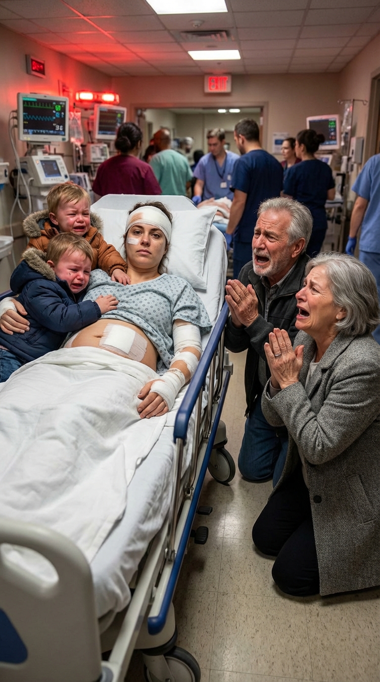 I was lying in a hospital bed at Las Vegas Medical Center, the air thick with the smell of antiseptic and the low hum of monitor alarms. My twin toddlers, Ethan and Emily, were sitting on the cold linoleum floor of the emergency room, clutching a single, battered toy truck. They were confused, tired, and tethered to the only person they had left: a mother whose body was failing. The pain in my abdomen felt like a serrated knife being twisted by an invisible hand.