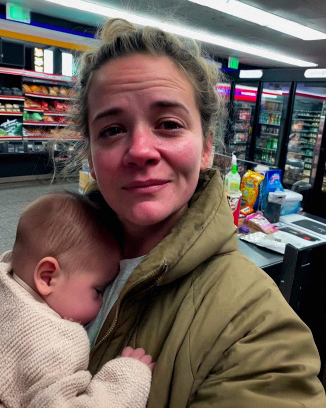 She didn’t browse. She picked up a carton of milk, a loaf of bread, and a pack of diapers. Nothing extra. When she reached the counter, she shifted the boy’s weight and waited.