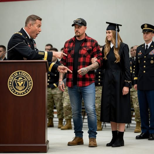 Elena held her smile because that’s what cadets were trained to do—hold the line, hold the posture, hold the moment. But her eyes flicked between her father and the general like she was watching a “rapidly unfolding” collision. As the crowd moved into the reception area, General Caldwell leaned toward Elena. “Lieutenant Rourke,” he said, formal. Then, in the same breath, he softened. “May I borrow your father for a moment?”