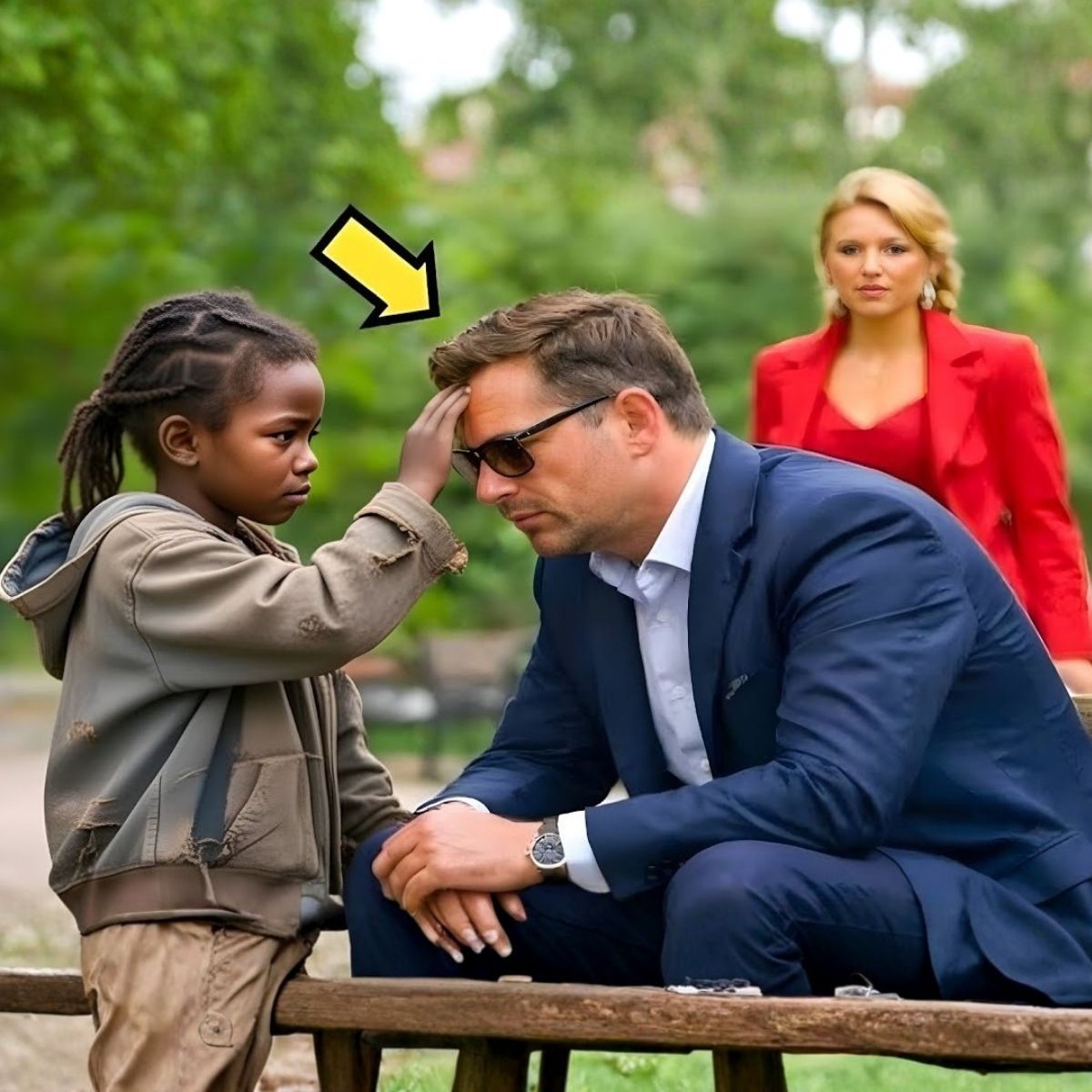 Before he could respond, the rhythmic click of expensive heels on the gravel path announced a new arrival. His wife appeared, looking like a portrait of grace in her designer sunglasses and silk scarf. But as she drew closer and saw the girl, the mask of the perfect spouse faltered. Her hands, usually so still and poised, began to tremble.